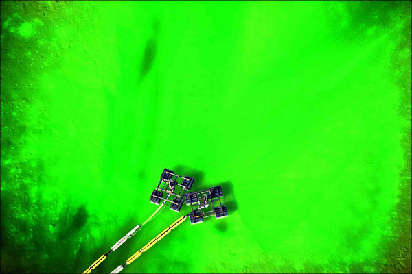 ▲加拿大安大略省的紙漿癌細胞,2005年。凱諾加米國家森林(Kenogami national forest)的木材被運至此處,開始面紙的紙漿生產過程;這些生產後帶有大量有機物的廢液,看起來就像癌細胞一般,準備接受治療再流入河水中。(圖/取自英國《衛報》)