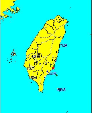 2日上五8點55分台東發生芮氏規模4.8地震,震央位於台東縣政府東北方31.7公里,深度16.4公里。各地最大震度為台東縣成功4級,台東市與高雄桃源為2級。
