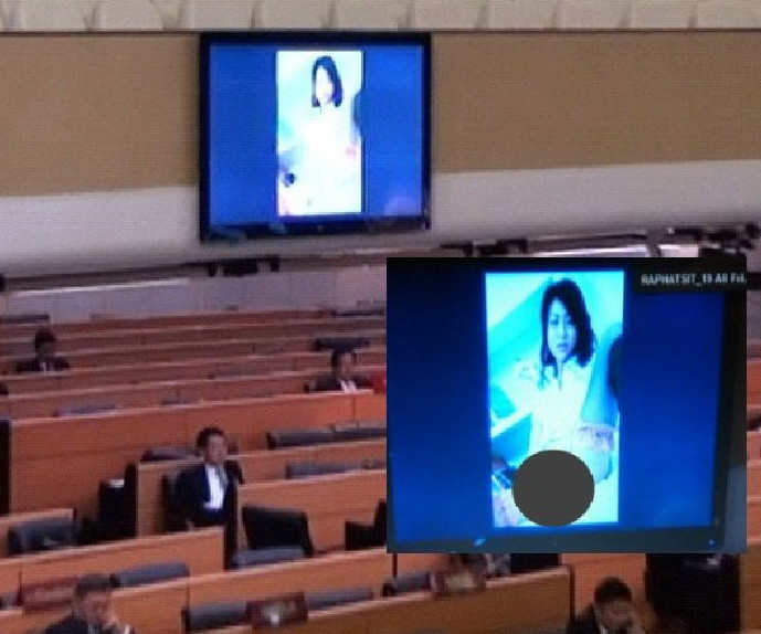 ▲▼堂堂泰國國會議場的大螢幕,出現半裸女子艷照。(圖/取自網路)