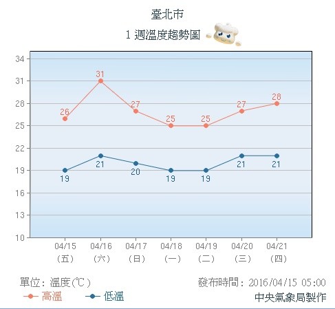 ▲明天各地高溫將會上看30度以上,其中以北台灣升溫較明顯。(圖/中央氣象局)