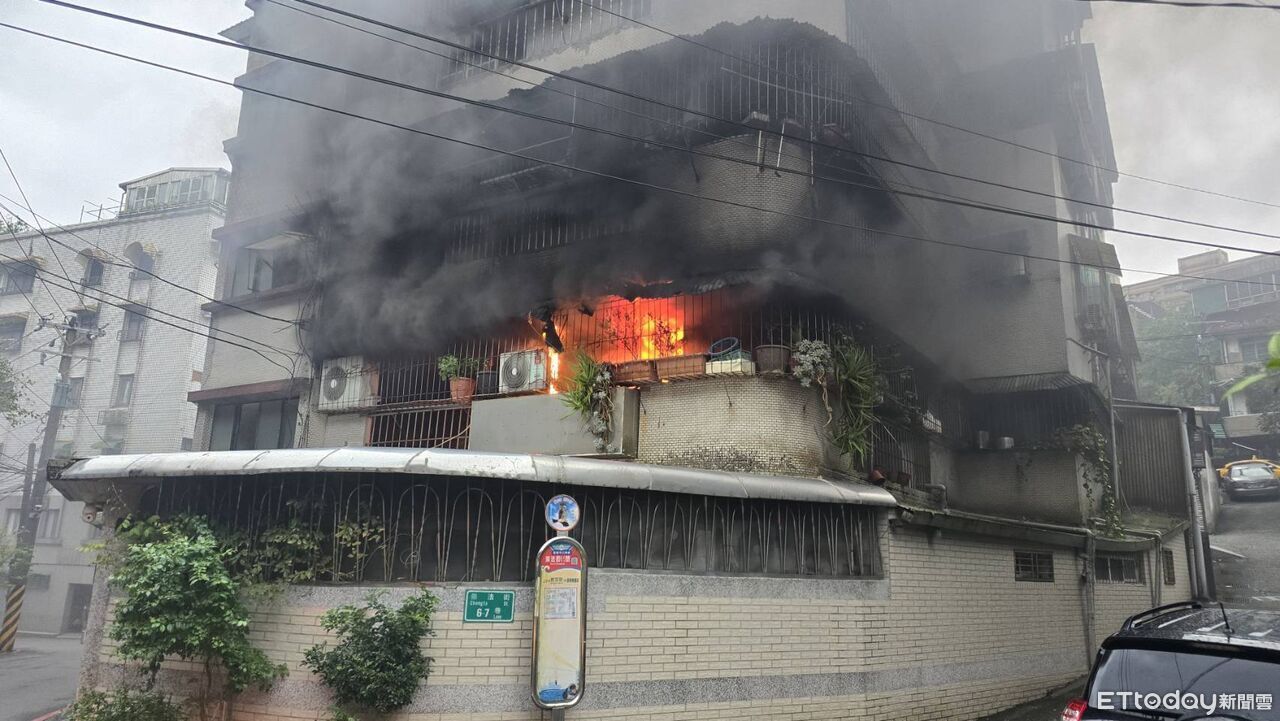 ▲基隆一處民宅2樓發生火災,消防搶救中。(圖/記者郭世賢翻攝,下同)