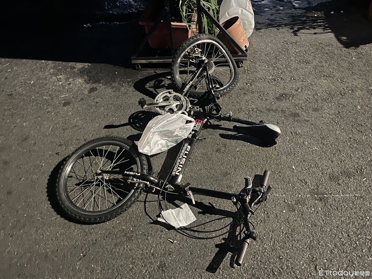 ▲腳踏車後輪後撞歪變形。(圖/記者許宥孺翻攝)
