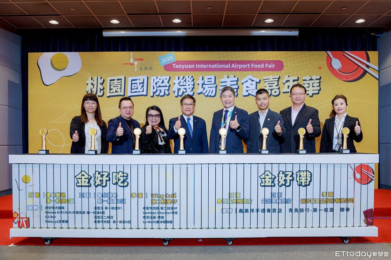 桃園國際機場公司26日舉行「2025桃園國際機場美食嘉年華頒獎典禮」,揭曉最受旅客青睞的機場餐飲及伴手禮品牌,並頒發象徵機場美食評選最高肯定的「金饗獎」,「金好帶」冠軍則由昇恆昌免稅伴手禮店拿下,「金好吃」類別冠軍由 Bistro:D 畢卓樂地餐廳奪得。