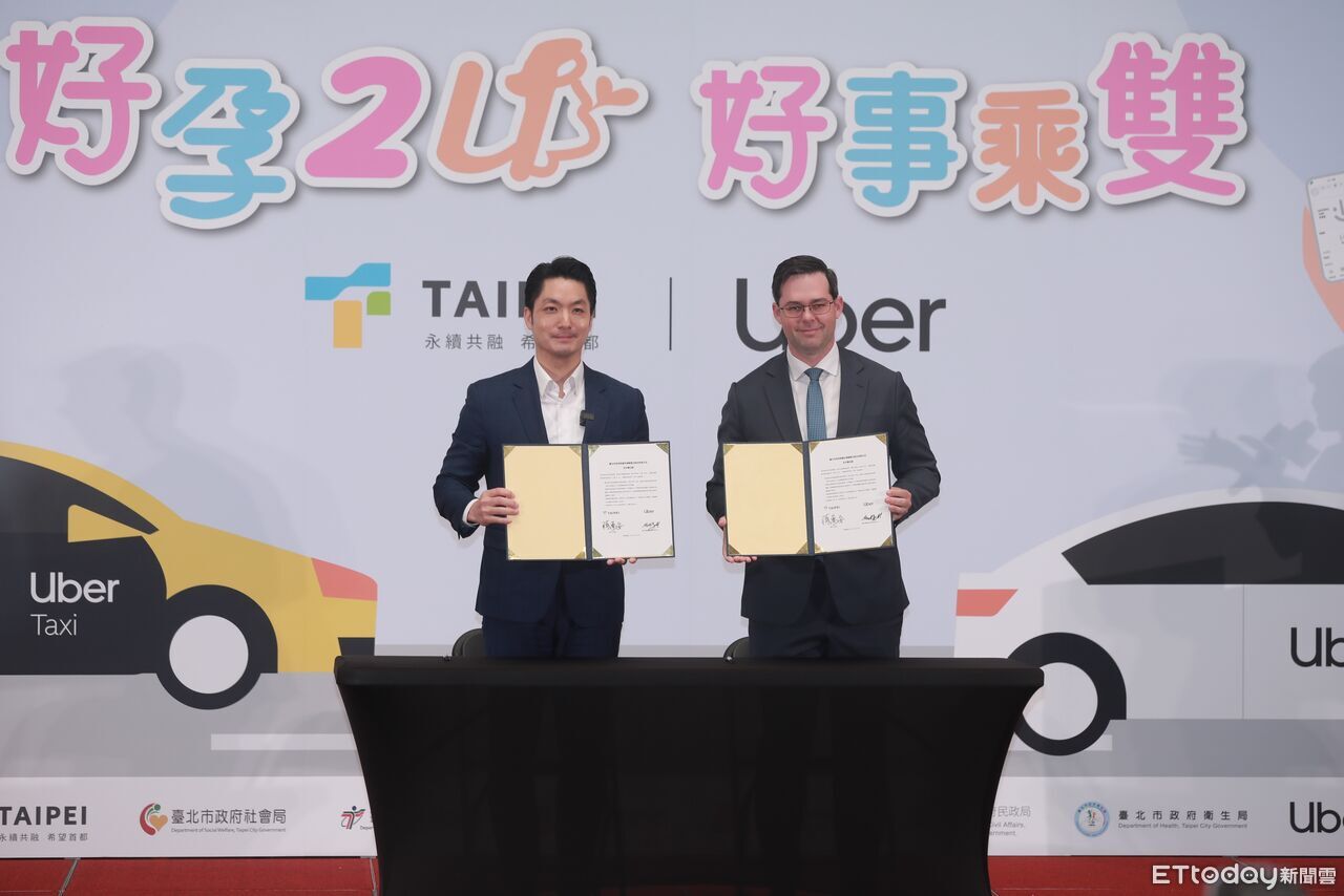 Uber攜手台北市政府今舉辦「好孕 2U,好事乘雙」,蔣萬安與Uber亞太區公共政策資深總監Mike Orgill簽署合作備忘錄;Mike Orgill表示,Uber近年專注滿足家庭成員不同的需求,例如有青少年版,讓家長可以掌握小孩動向,也有照顧年長者的出行需求,好孕專案更是彌補了重要一塊拼圖。