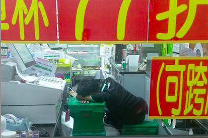 這名網友在臉書社團「靠北全家」PO出一張照片,畫面中可看到店員整個人累到趴在箱子睡覺。原PO心疼表示,「剛剛去存錢完才發現此店舖大夜累到不行,或許總公司該取消24小時的便利性,畢竟這樣也有危險性的存在,更何況是商品被偷而賠錢。」