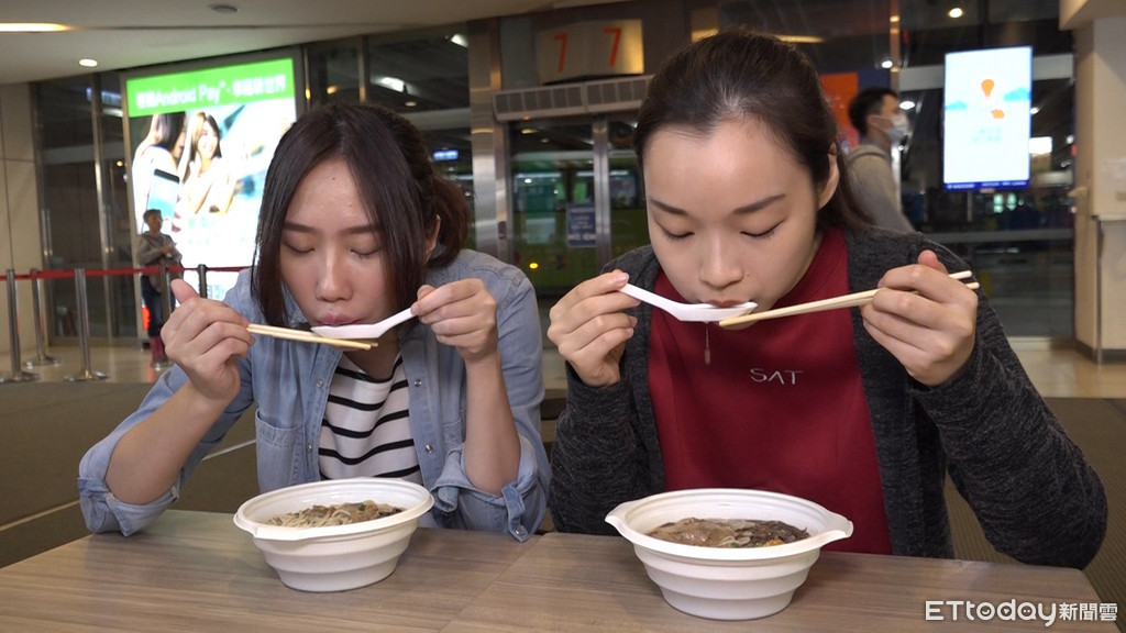 ▲民眾試吃後,覺得湯頭很甜、麵條很Q很有咬勁。(圖/記者謝婷婷攝,下同)