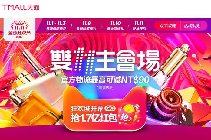 天貓雙11邁入第8年,今年為強調互動性,光是紅包玩法就分為多種,包括火炬紅包、現金紅包、紅包雨、物流紅包,依不同時段陸續推出,除了一般消費者熟悉的紅包雨,火炬紅包玩的是點亮紅包大接力賽,主打掃碼賺優惠;針對台灣消費者推出的物流紅包,則是可用於折抵集貨物流的運費。