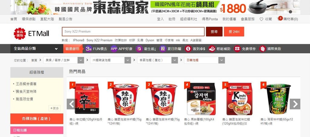 ▲颱風期間,網購防颱相關商品買氣竄升,尤其許多人會搶購泡麵囤貨,成為防颱必備品之一。(圖/翻攝自東森購物網)