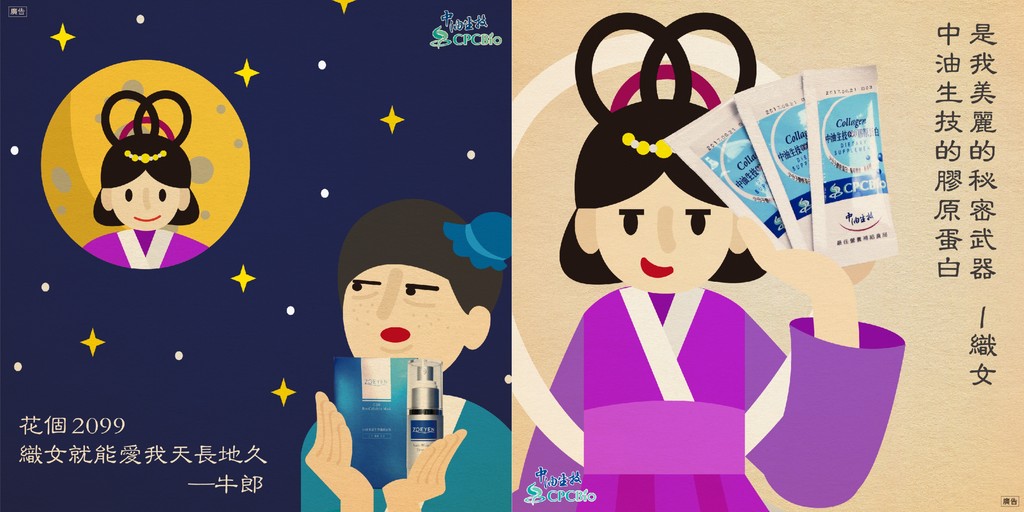 保養品牌找來明星代言是大家再習慣不過的事,隨著一年一度的七夕即將8月17日登場,各式限定商品也在此時釋出代言與優惠活動等,希望趁著這波情人節商機增添過節甜蜜氣氛,同時幫有送禮需求的民眾精打細算省下荷包。中油生技此次也推出了七夕限定禮盒,以經濟實惠又hen浪漫的價格數字,讓情人們選購送禮、互討歡心。不過讓人意想不到的是,此次活動破天荒不找男神,也不找女神,而是直接找來仙界的牛郎織女攜手嫦娥「代言」,這個超「神」組合與強打的保養禮盒,就是要讓凡間的男男女女提高顏值、仙氣逼人!