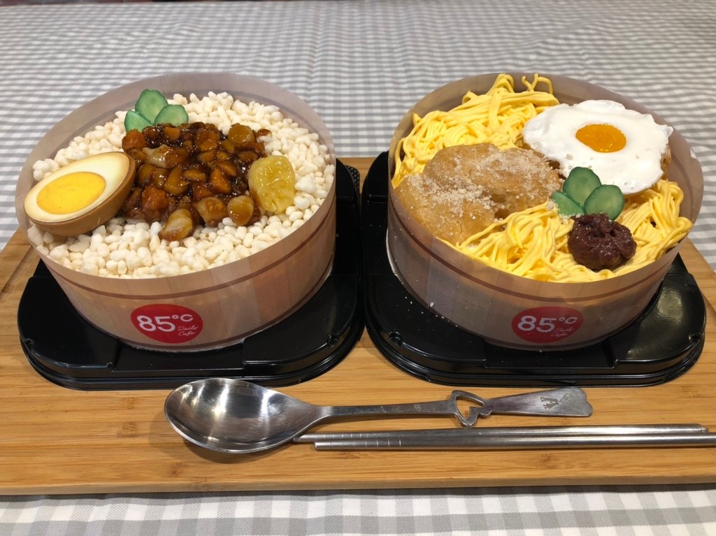 85˚C竟開賣「懷舊便當」!為顛覆一般傳統,這次85˚C逆向操作開發甜的台灣懷舊便當造型蛋糕,包含「滷肉飯便當」和「肉燥麵便當」,都是6吋蛋糕,一個售價380元。其逼真造型預計將引發網友嘗鮮風潮。