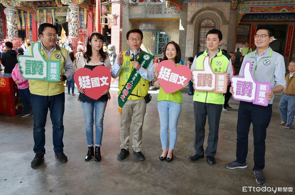 ▲來自台北、新北桃園和台中的民進黨人氣議員,組成美女男助選團,陪同台南立委補選參選人郭國文到台南麻豆代天府參拜及市場拜票。(圖/記者林悅翻攝,下同)