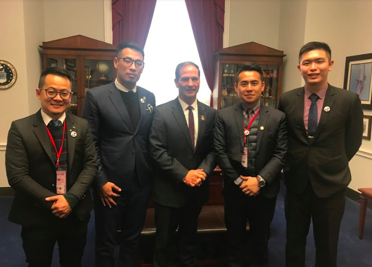 基隆市長林右昌率領的訪問團於美國時間13日下午,前往國會山莊拜會三位聯邦眾議員,進行學習與交流,並希望這些友台議員能在國會中持續為臺灣發聲,並進一步深化美台友誼。包括林市長、民政處長王榆森、研考處長黃駿逸以及四名新上任的基隆市議員童子瑋、張顥瀚、林旻勳及張秉鈞等人在內的訪問團一行人,經過嚴格的安檢後,抵達國會山莊進行交流。