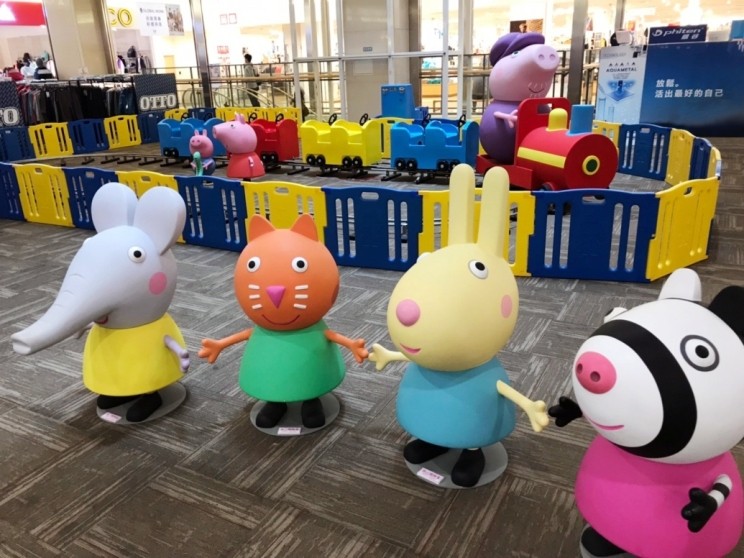 ▲Global Mall引進粉紅豬小妹卡通主角人物公仔,歡慶兒童節。(圖/環球購物中心提供)