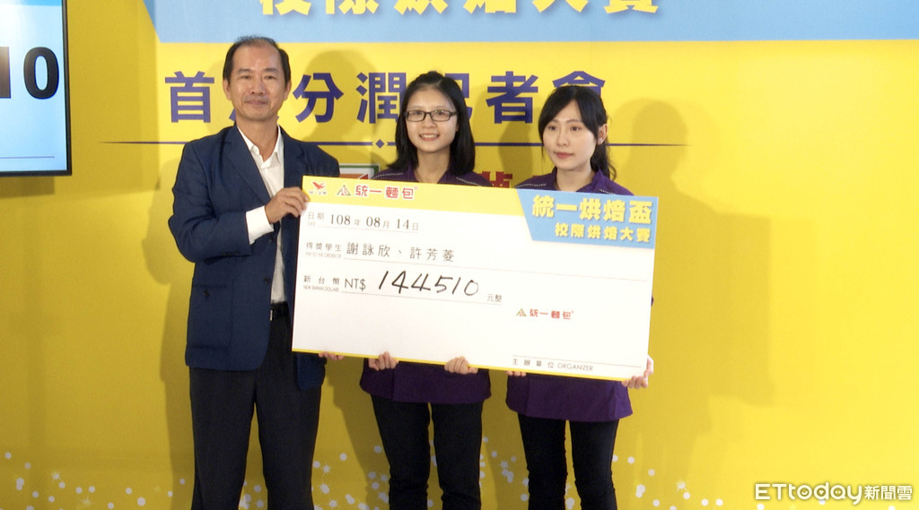 看到自己創作的「統一麵包-紫薯QQ」,在小七上架短短30天,銷售就突破44萬顆,獲得市場肯定,更為自己賺進超過14萬元的分潤獎金,讓第一屆統一烘焙盃校際烘焙大賽的兩位得獎學生,驚喜又感動。