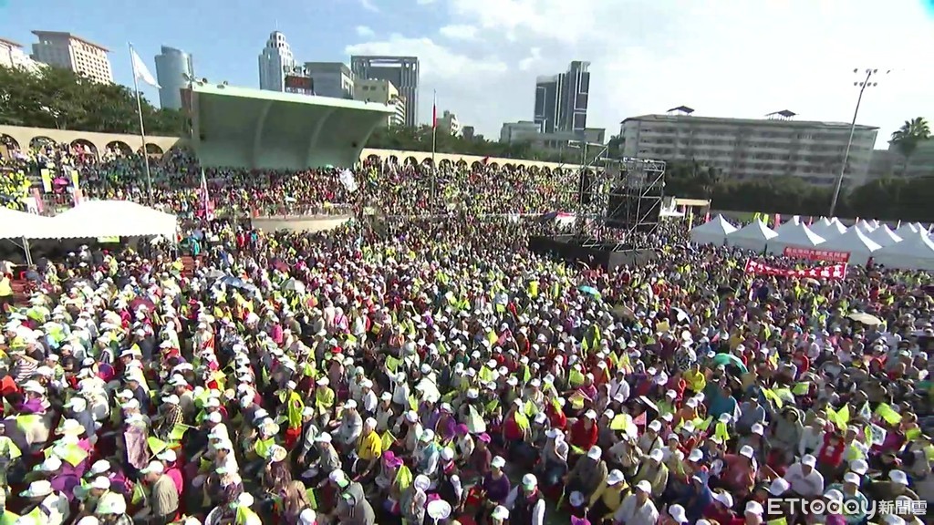 蔡英文新北造勢再度爆場,破萬支持者擠爆板橋第二運動場。不只萬張椅子坐滿,支持者甚至滿溢到一旁的跑道,以及周圍的看台區。蔡英文一現身就受到支持者簇擁,「凍蒜」聲不斷。