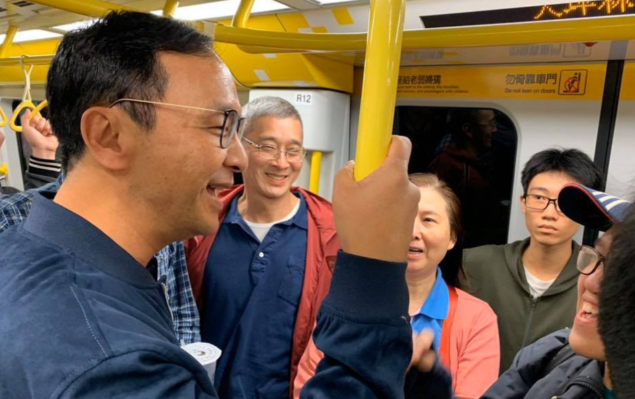 ▲朱立倫試搭環狀線。(圖/翻攝朱立倫臉書)