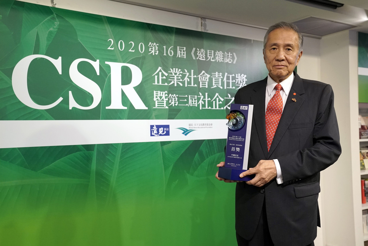 ▲「夢想+圓夢工程」一舉榮獲遠見「傑出方案-教育推廣組」首獎,中信文教基金會董事長馮寄台出席領獎。