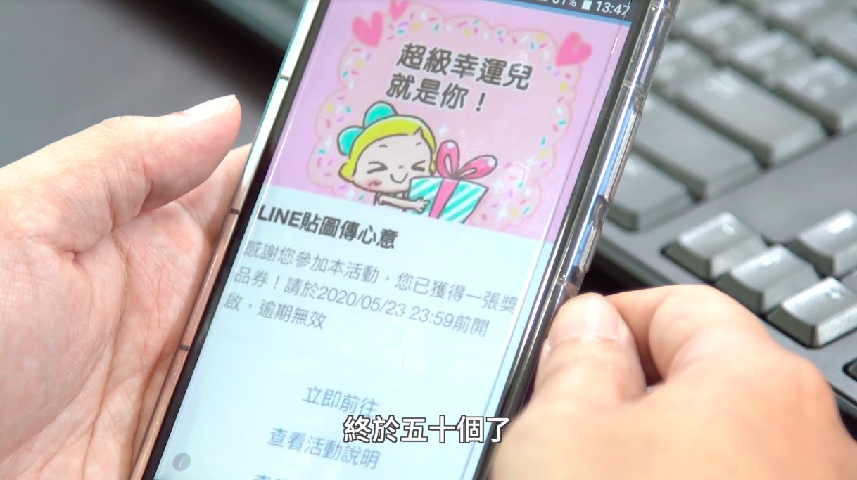 隨時掌握優惠資訊的閨蜜,趁這個機會也鼓勵女主角忘掉心儀男,自己玩起來!因為這次的LINE貼圖活動,好玩好上手,也能同步增進好友感情,CP值超高。只要點選連結、購買活動貼圖,在日常生活的對話中,不管笑臉、哭臉通通傳給家人朋友,傳給N個人就可以拿到N個集章拿獎。更佛心的是,只是乖乖接收貼圖的人,什麼事都不用做,也可以集章、兌換獎項,不用出力就能參加的活動,一度還被網友懷疑「真的不是詐騙嗎」,所以女主角前晚收到心儀男貼圖,等於先幫她蒐到第一個集章,難怪會被閨蜜大讚:「傳貼圖的人,根本就是做善事嘛!」