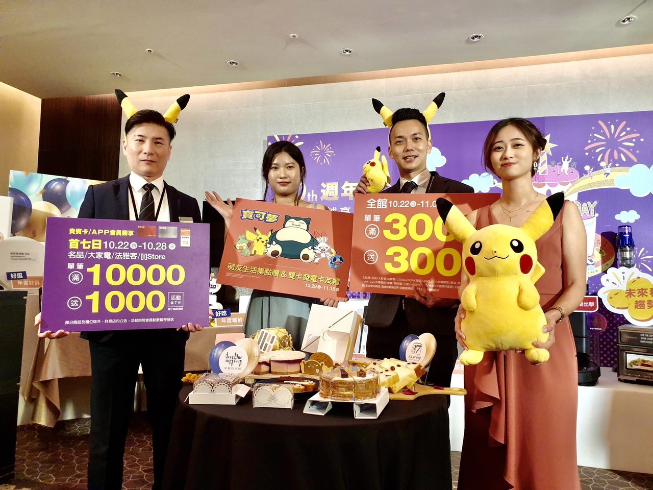 新光三越高雄左營店十週年慶,滿仟送佰購物回饋快狠準,大勢潮流全新登場,不出國也能買遍全世界!全館單筆3,000送300,化妝品單筆滿2,000送200,名品/大家電/法雅客/[i]Store單筆滿10,000送500,新光三越會員10/22~10/28首七日獨享名品/大家電/法雅客/[i]Store單筆滿10,000送1,000,禮券回饋秒入APP,免排隊最便利!指定銀行卡友刷卡滿額再加碼,新光三越會員卡友獨享最多回饋就是狂!另外,今年週年慶特別推出超人氣的「寶可夢」聯名合作與限定商品登場!還有寶可夢見面會、快閃店及「Pokémon Ga-Olé(寶可夢加傲樂)先行體驗」,強力號召!訓練師們快來與寶可夢們一起盡情玩耍吧!
