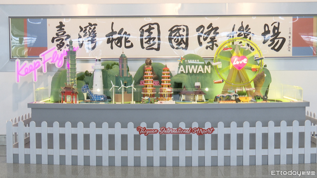 ▲第一航廈入境大廳增設的裝置藝術以台灣著名地標為主。(圖/記者張凱喨攝,以下同)