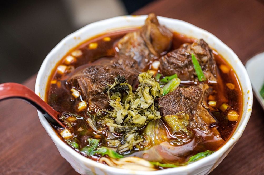 用餐時間一到,往德行東路的人群匯聚處看去,一定會看到「忠誠牛肉麵」微微褪色的赤紅色招牌。作為Google的高評分美食,每一則評論中都不忘提到忠誠牛肉麵的牛肉塊有多「大」。點一碗店內招牌的「半筋半肉牛肉麵」,湯裡大約會有五到六塊的牛肉,滿滿的肉量幾乎蓋住了碗裡所有的麵,即便點小碗,吃起來也十分有飽足感。牛肉塊用筷子一撕即開,放入口中就能感受到熬煮多時的軟嫩,肉汁緊緊鎖在肉中讓肉質不致乾柴,筋的部分Q彈有嚼勁增添幾分口感,再舀起一口微辣的紅燒湯頭配著喝下,濃郁的香氣與牛肉在口中碰撞出難忘的味道。