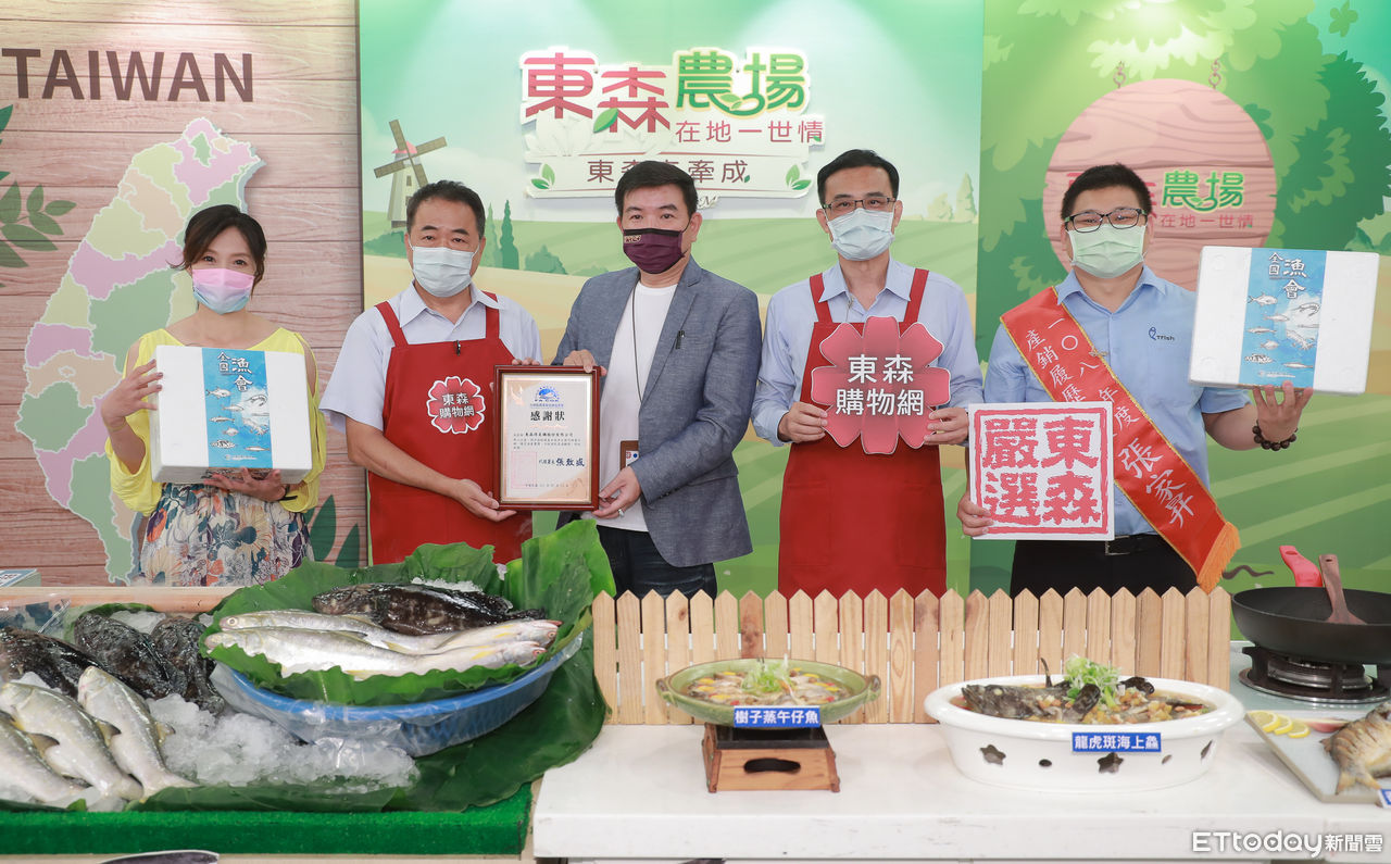 ▲漁業署署長張致盛(左2)呼籲民眾多吃午仔魚及石斑魚,並感謝東森農場協助推廣本土水產。