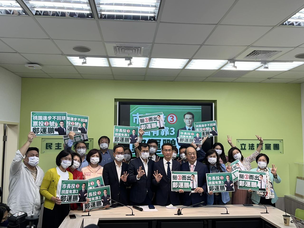 桃園市長選舉倒數,民進黨立法院黨團21日上午舉行「國會好鵬友挺運鵬」影片發布記者會,黨團總召柯建銘表示,鄭運鵬瘦了、黑了、聲音沙啞了,雖不捨但有信心,「桃園交給鄭運鵬,我們一定放心」,強調全世界都在看台灣的選擇,並讚美鄭正直、勇敢、承擔、負責、專業、認真,自己也從他身上學習勇往直前的人格特質。