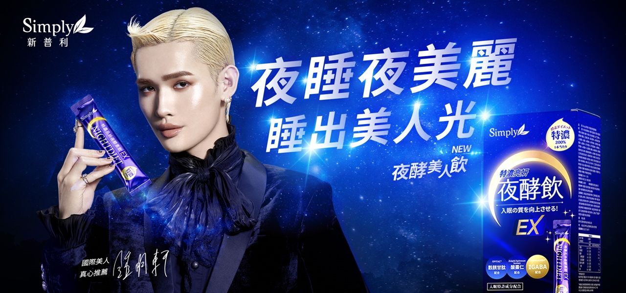 以說真話與超自信的形象深受Z世代的喜愛、擁有百萬粉絲追隨的「國際美人」鍾明軒,之前就曾在YOUTUBE頻道分享過自己很喜歡Simply新普利夜酵素,此次受邀成為全新「特濃亮妍夜酵素飲」的代言人,展現白天與黑夜的不同的樣貌。