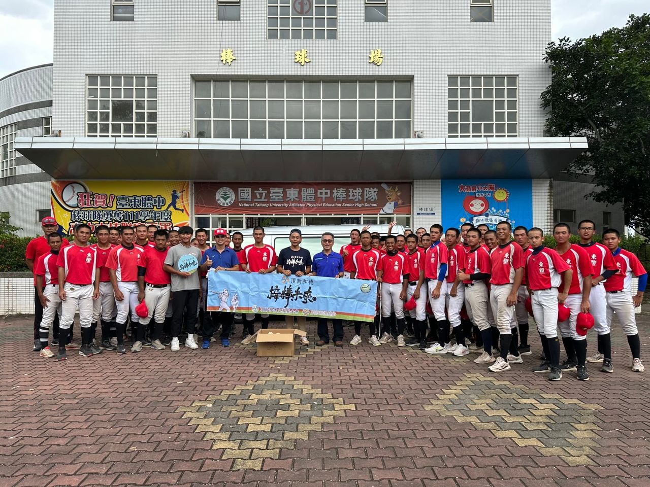 ▲基金會邀請顏大衛一同至母校臺東體中贈送味全龍練習用球。(圖/頂新和德文教基金會提供)