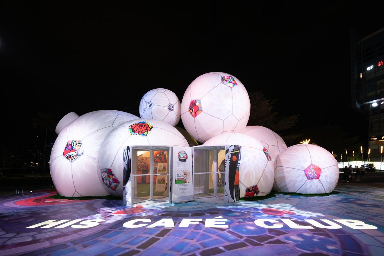 ▲HIS CAFÉ於高雄夢時代打造結合巴賽隆納現代藝術與足球狂熱的「足球嘉年華」聖誕主題裝置。
