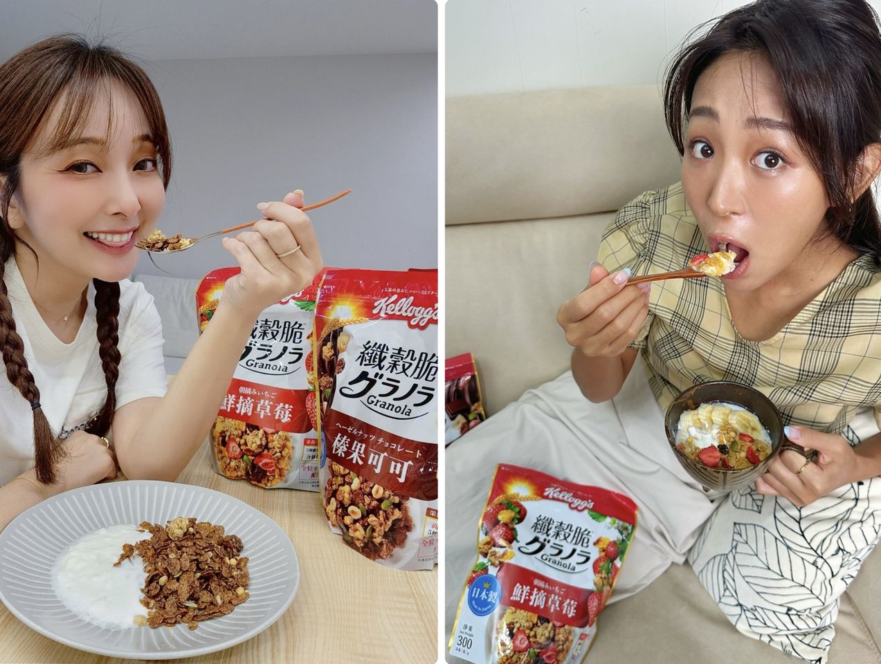 看到家樂氏出了日本製的纖穀脆有滿滿的親切感的藝人愛紗,她說「早餐穀片是我和媽媽的最愛!我最喜歡搭配優格一起吃,真的超級好吃的!還有牛奶、優酪乳或豆漿搭配起來也美味」,所以當她在台灣看到家樂氏纖穀脆的時候就想起跟媽媽一起吃早餐的快樂回憶,推薦給粉絲一起品嚐,當早餐或下午茶都適合,每一口都能享受最日本的風味!