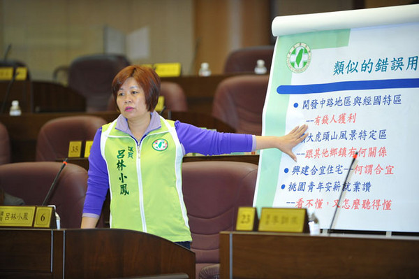 呂林小鳳指出,一般民眾對於中路、經國地區開發案的反應是炒地皮、財團獲利。虎頭山廁所不夠,週邊雜草叢生,還沒改善,現在又要推擴大風景特定區?而青年安薪就業讚,則是縣府鼓勵穩定就業的補助措施,但為何青年仍不願就業,縣府應實際了解問題。