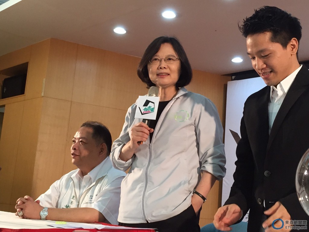 民進黨台北市議員何志偉、台聯北市立委參選人蕭亞譚等人,31日邀請總統參選人蔡英文出席「有志氣青年挺英陣線」記者會,蔡英文致詞時笑說,希望陣線任務不要只吃窩邊草,鼓勵多找非民進黨籍年輕人加入。