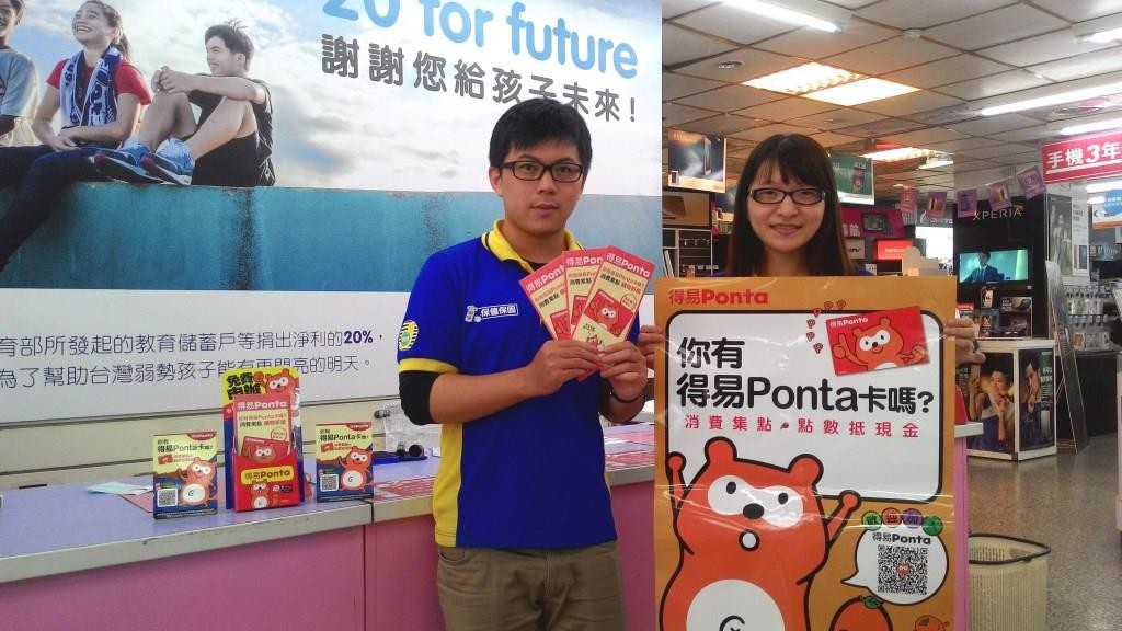繼萊爾富、OK超商的合作後,得易Ponta再延伸點數版圖,11月初有順發3C量販、晶豪泰數位影像館、彩醫形象醫學正式加入成為合作特約商,其中順發3C將於11月6日推出限時免費兌點商品,並分別設置500點、1,000點、2,000點加購專區,開放得易Ponta會員進行點數加價兌換,兌換商品有隨身碟、滑鼠、吹風機、智慧型手機、電腦等,活動至12月5日止。