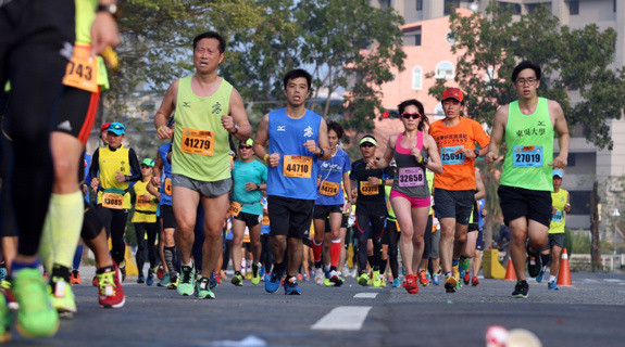 ▲2016高雄國際馬拉松發生有男性跑者昏倒休克事件,醫師提醒在PM2.5下跑步,這行徑宛如慢性自殺。(圖/高雄市體育處提供)