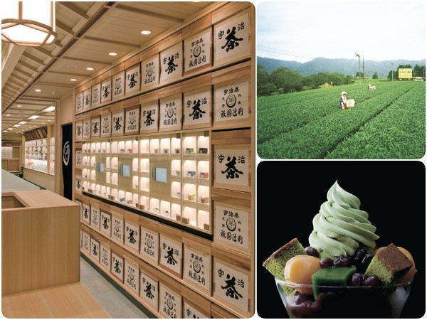 ▲「祇園辻利」(左)自創業以來店主專心經營「宇治茶」(右上) ,後開設「茶寮都路里」才有抹茶甜品聖代(右下)。(圖/時報出版提供)