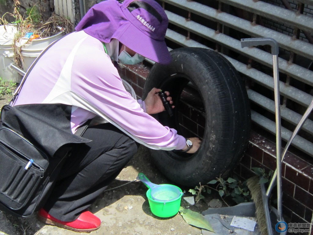 ▲台南市衛生局稽查人員,加強稽查登革熱滋生源。(圖/衛生局府提供)