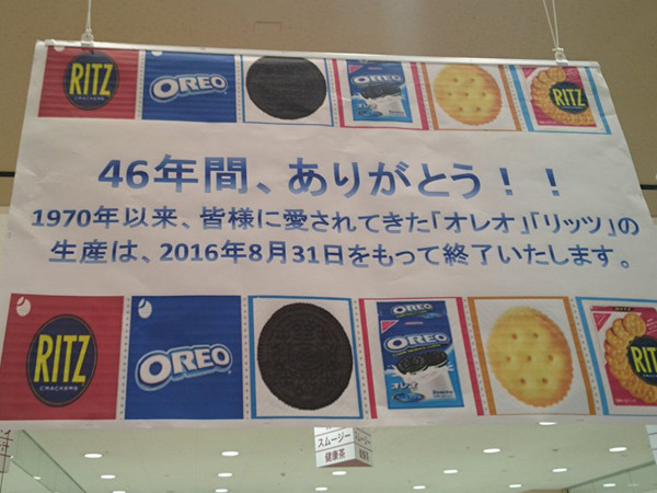 因此趁著8月底前,不少日本人透過網路、賣場等,瘋搶「日本製」的OREO、RITZ餅乾,網友直說「快到大賣場多搬幾箱」,賣場中也豎立告示表示要停止生產這系列餅乾。