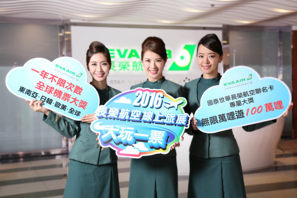 「2016年長榮航空線上旅展」活動期間從10月5日至11月7日止,推出60個飛航城市超值限時優惠,折扣最低54折起。凡於官方網站完成購買台灣地區出發的國際線成人來回機票,即具抽獎資格,一張機票可享一個抽獎機會,獎項包括2017東南亞、日韓、歐美及全球不限次數經濟艙機票。
