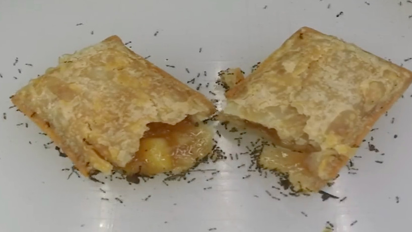 大家都知道螞蟻的搬運功力驚人!前陣子新聞報導,便當靜置短短10分鐘,引來大批螞蟻大軍襲擊搶糧,瞬間變成芝麻蓋飯,讓民眾當場崩潰。國外網友也進行一場超狂實驗,買來熱騰騰的蘋果派準備宴請火蟻軍團,想看看這些勤勞的傢伙,到底怎麼瓜分?