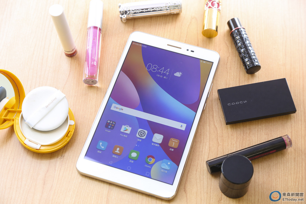 ▲平板兼具大螢幕、高電量和通話功能,外出攜帶時尚又便利,猶如個人行動辦公室和娛樂中心。圖為華為T2 8 Pro。(圖/記者黃克翔攝)。
