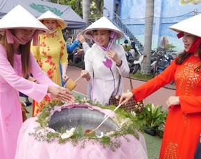 慈濟基金會將母親節與佛誕日活動合辦,14日於彰化南郭國小舉辦浴佛典禮,新住民著傳統國服與家人共同浴佛,傳遞對家鄉母親的祝福與感恩之意。