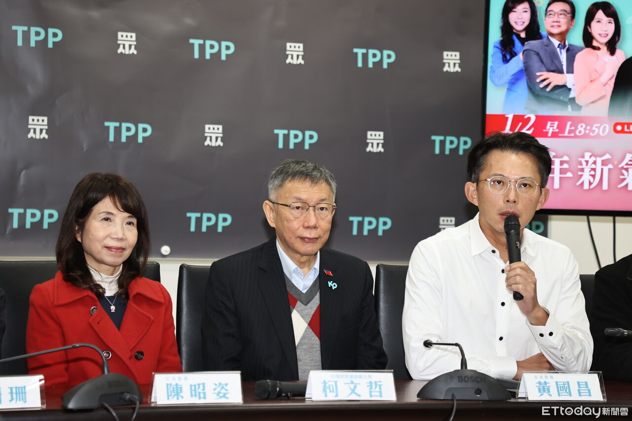 ▲民眾黨立法院黨團「新年新氣象 眾人作夥拚」記者會 ,創黨主席柯文哲、黨主席黃國昌、幹事長陳昭姿。(圖/記者徐文彬攝)