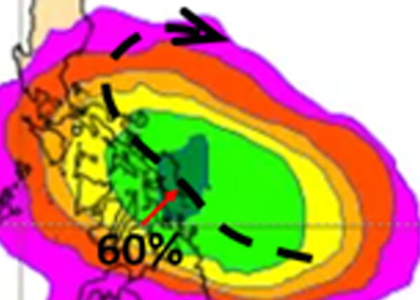 吳德榮分析,最新歐洲模式系集模擬顯示,下半周菲律賓東方海面有熱帶擾動發展,成颱的機率約60%,模擬路徑大致在菲律賓東方海面迴轉,之後還有打轉的現象,與「1月颱」未曾侵台的氣候資料吻合;但對台灣是否還有輕微的間接影響?模擬還在調整,應續觀察,言之過早也是枉然。