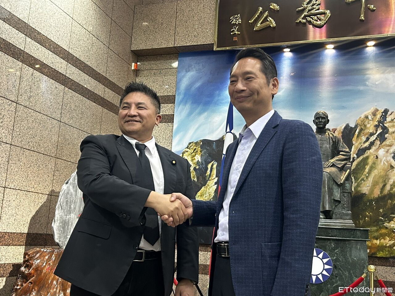 ▲2026宜蘭縣長選舉,國民黨中央黨部16日協調人選,議長張勝德(右)、立委吳宗憲(左)皆出席。(圖/記者崔至雲攝)