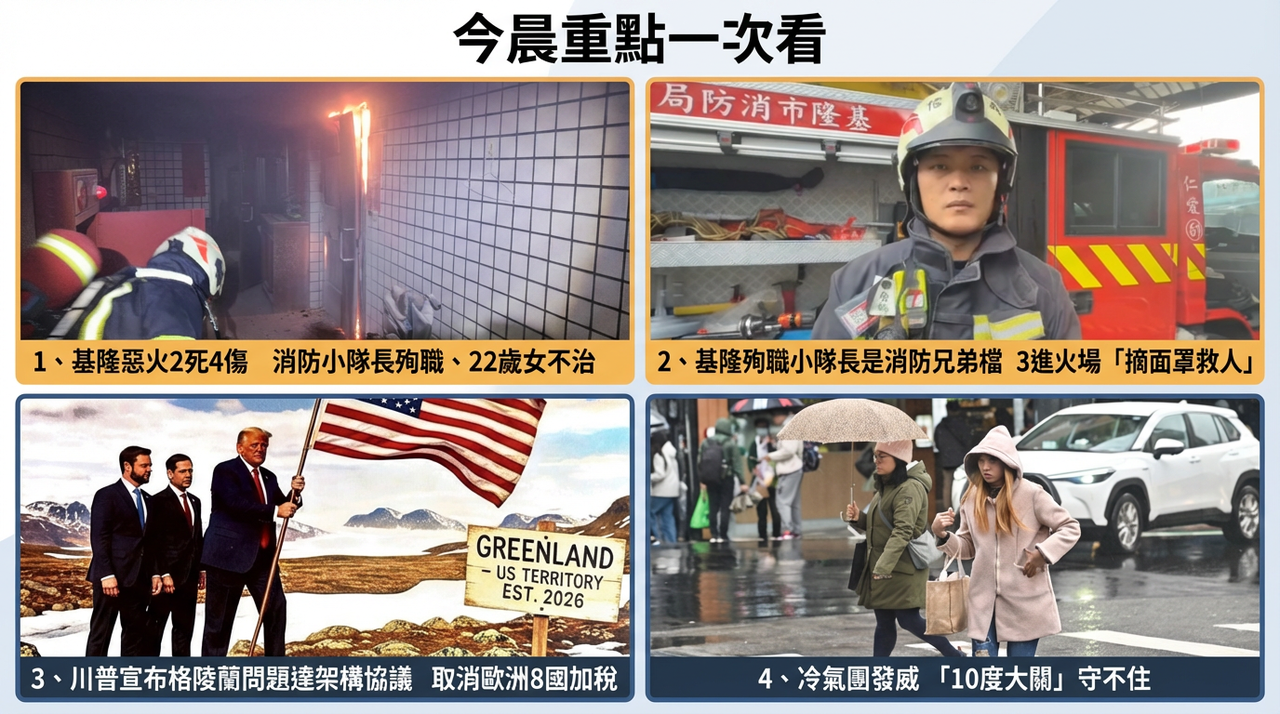 ▲0122晨間重點。(AI協作圖/記者葉國吏製作,經編輯審核)
