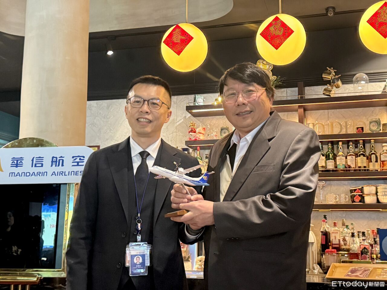 ▲華信航空董事長陳大鈞(右)與華信航空總經理莊明哲(左)合影。(圖/記者周湘芸攝)