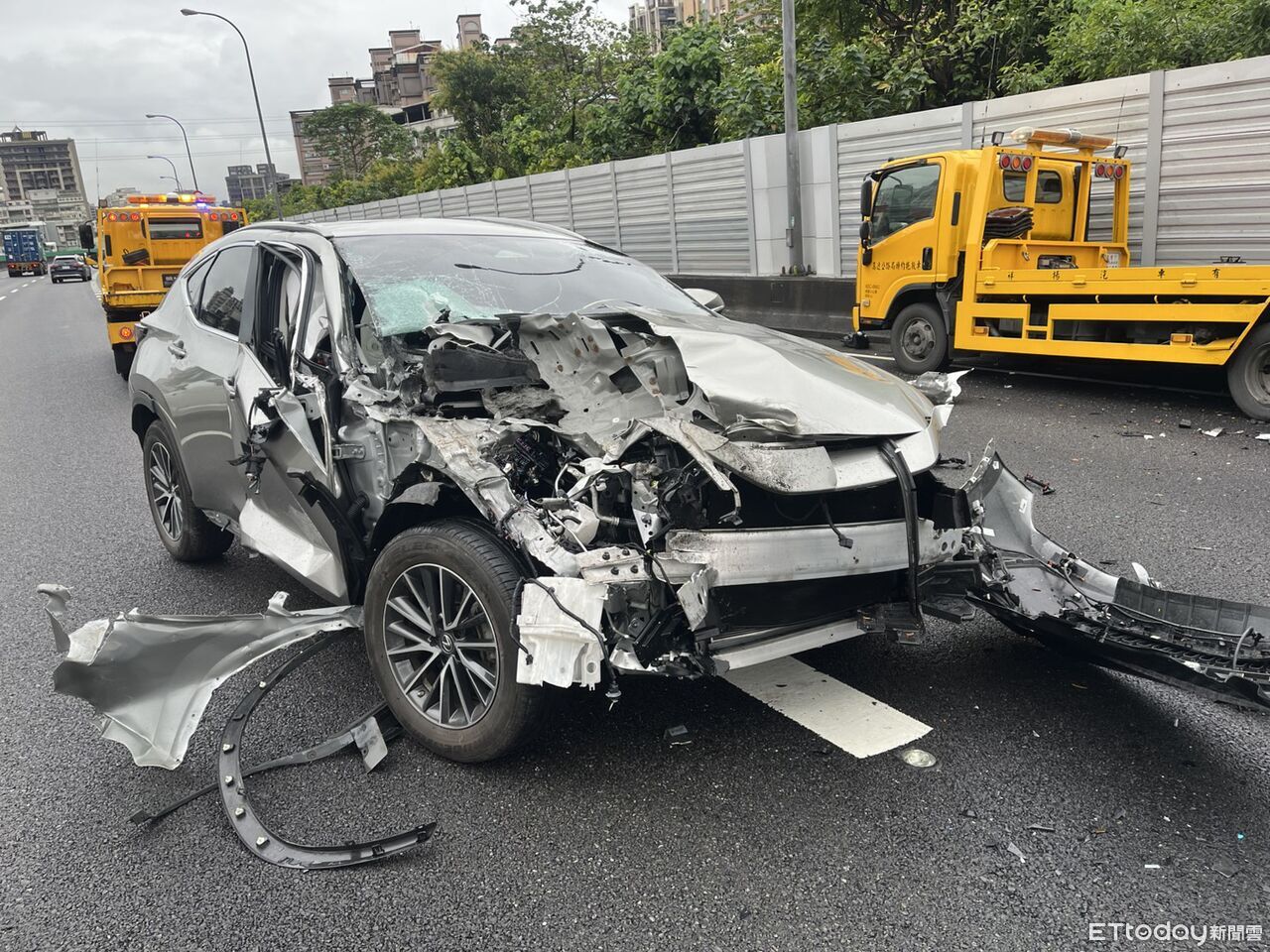 ▲22日上午國道中山高汐止路段發生休旅車追撞貨車意外。(圖/記者張君豪翻攝、下同)