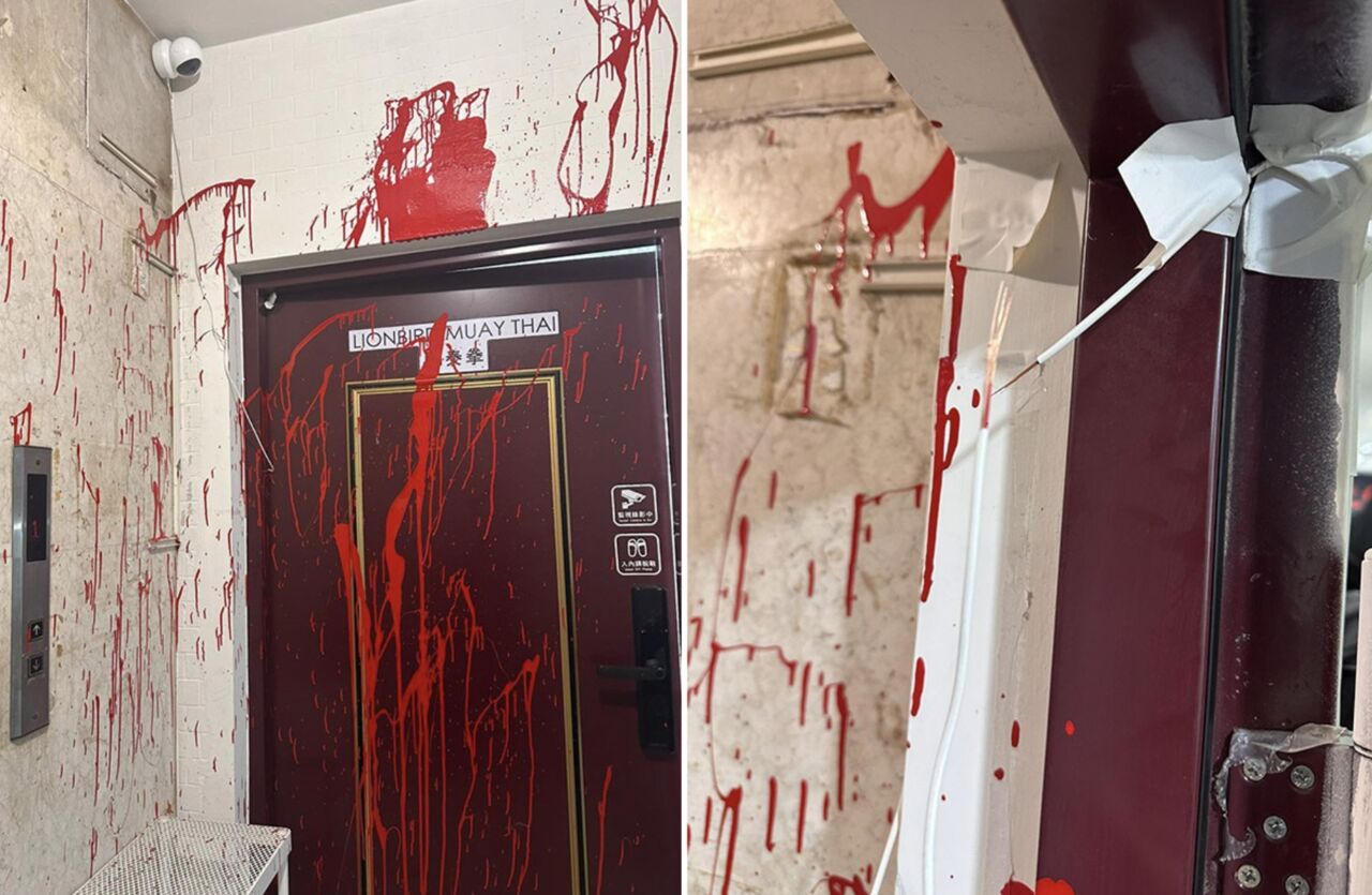 ▲湯偉雄拳館遭潑漆。(圖/翻攝赴湯facebook)
