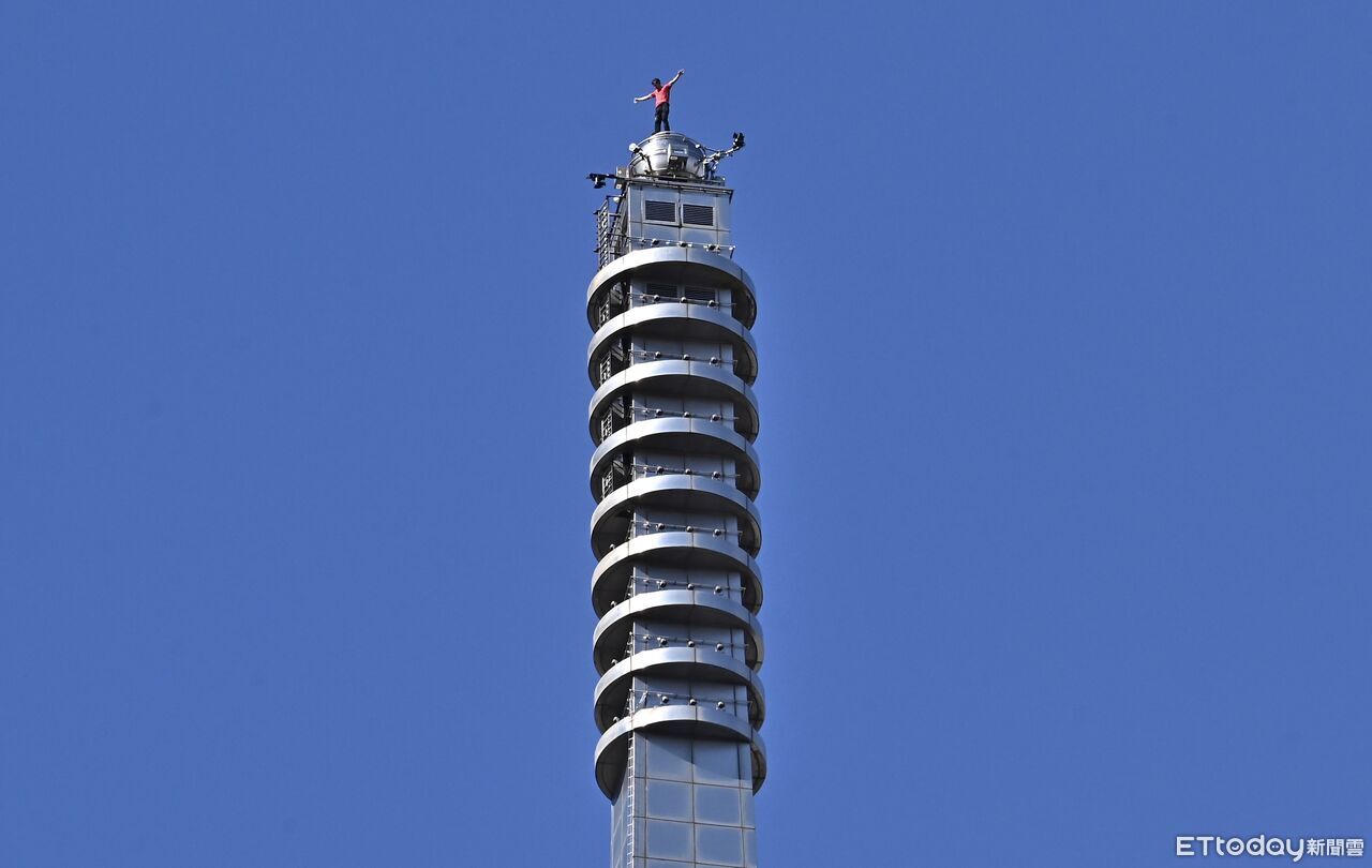 ▲美國自由攀岩名將霍諾德(Alex Honnold)於台灣時間25日挑戰徒手攀登台北101,上午十點四十分左右成功登頂。(圖/記者李毓康攝)